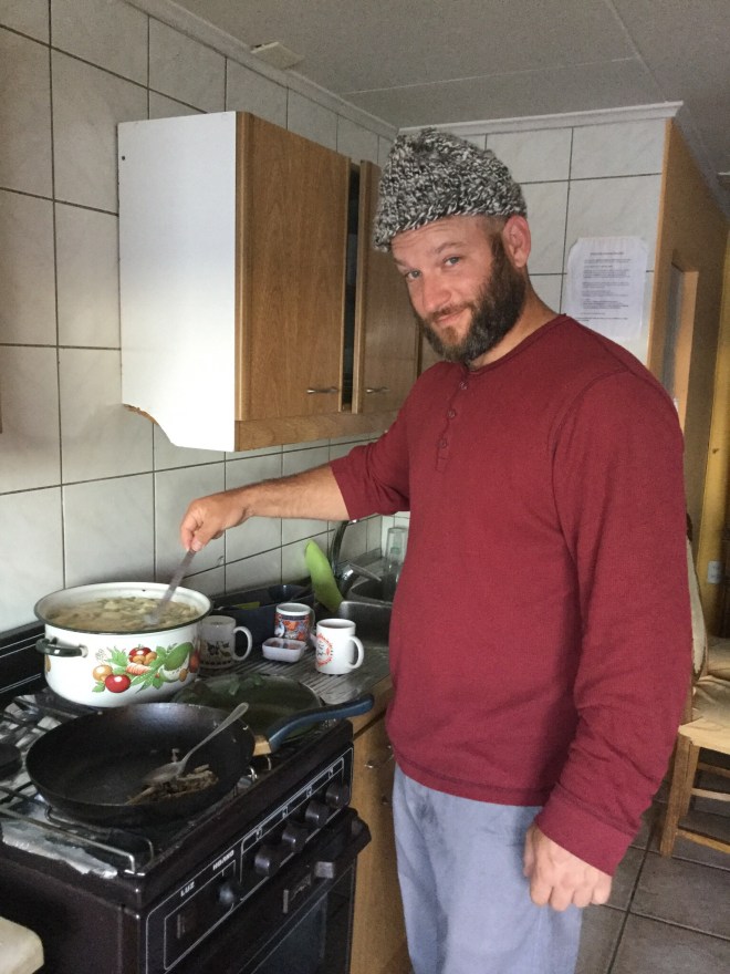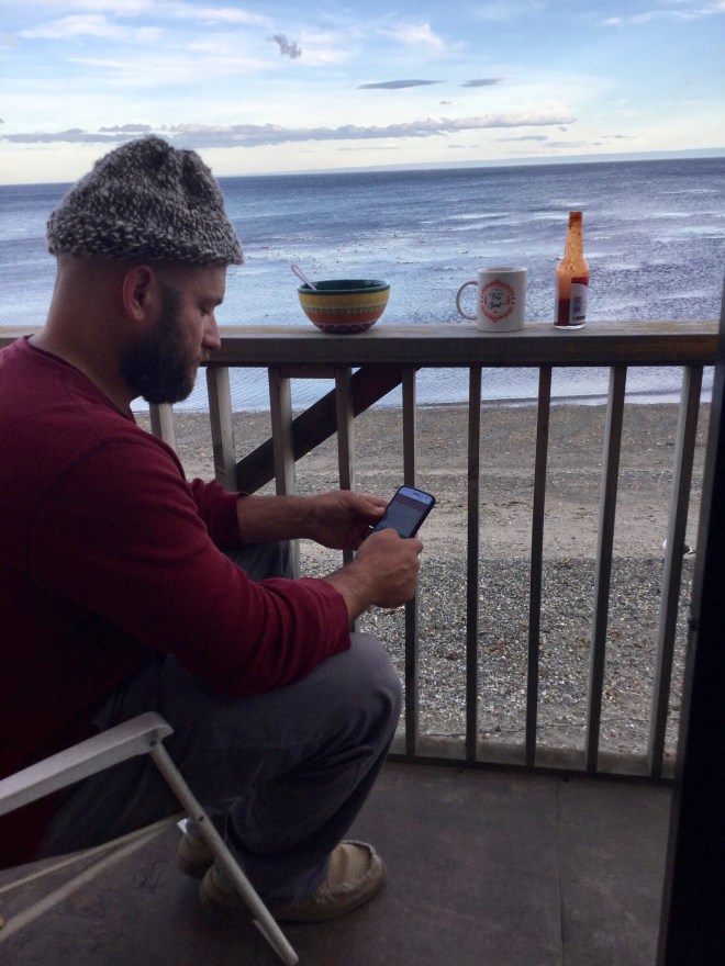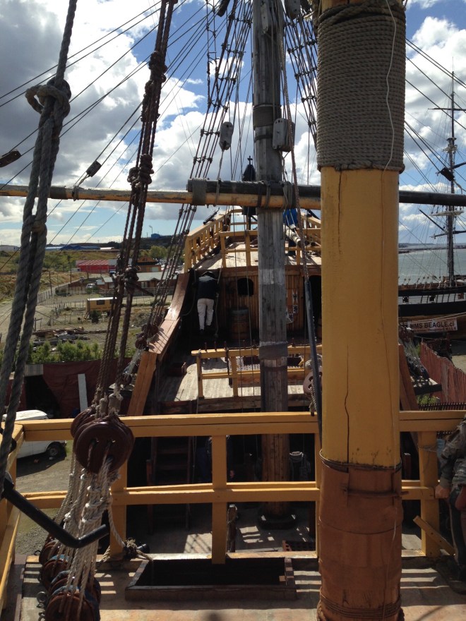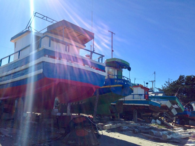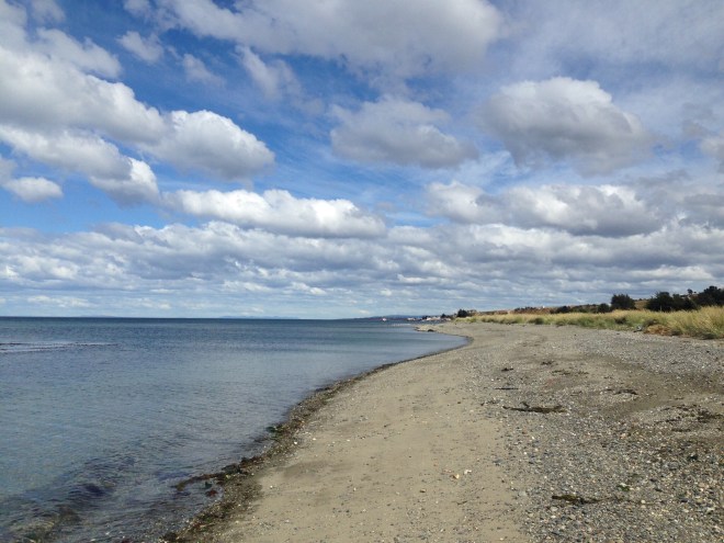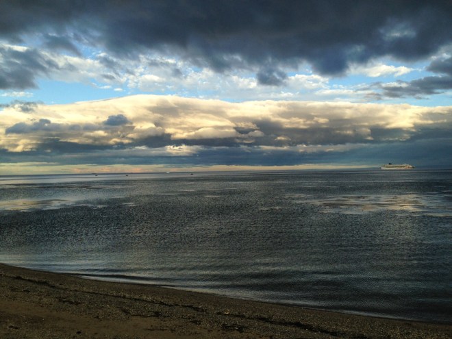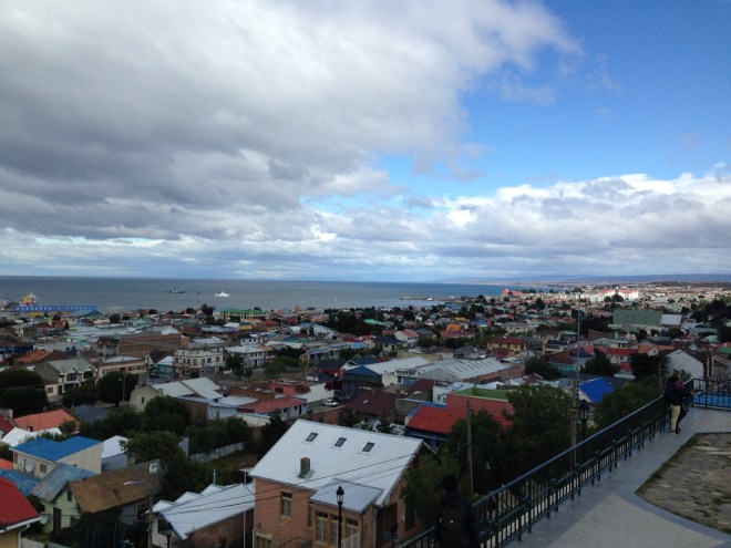 This is the view from the small porch connected to the community kitchen of the Straits of Magellan. The color of the water constantly changed based on the wind and clouds overhead. It ranged from aqua to black in any given hour. We’d watch as cruise ships and fishing boats sailed in and out the Straits.