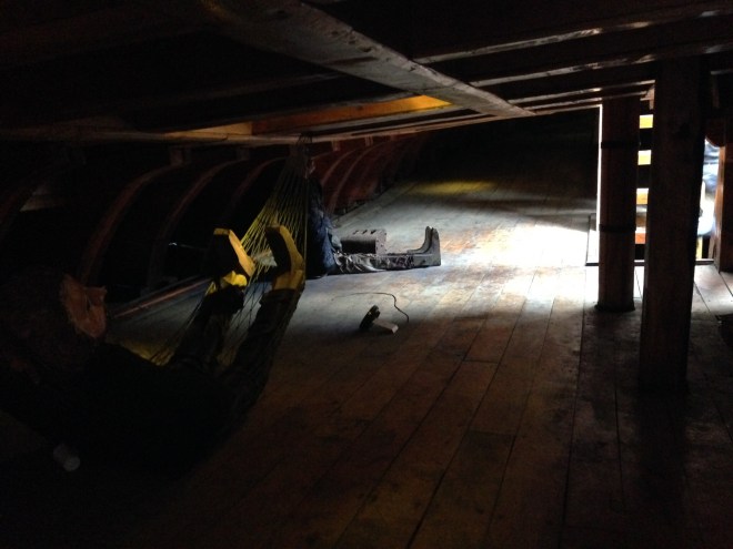 Another photo of the same room showing the “toilets” at the front of the room where they had to relieve themselves in front of everyone.
