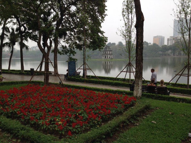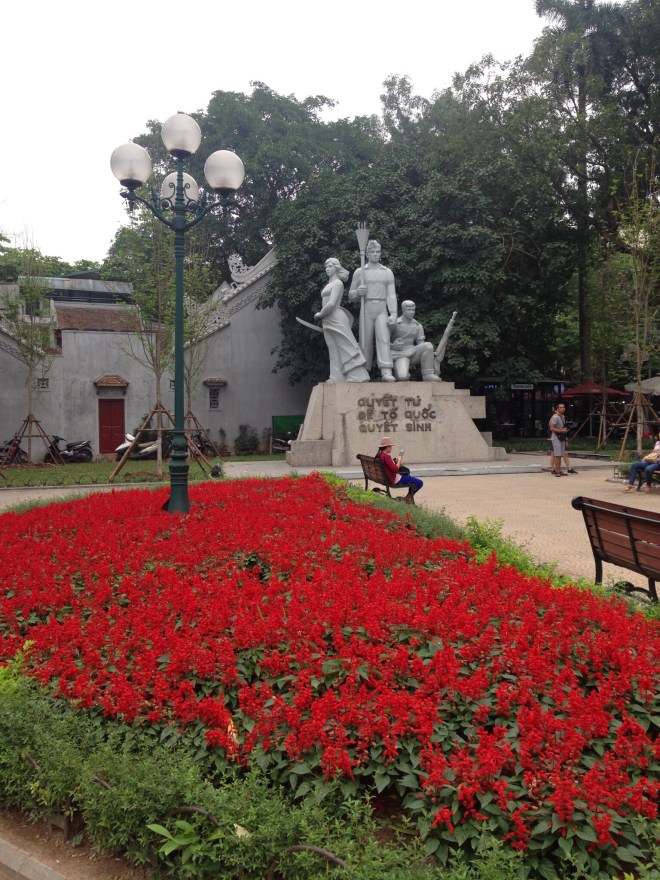 Hanoi itself is the capital of Vietnam and the resting place of Ho Chi Minh, the communist leader who led Vietnam to independence. In the middle of the old city, is a large, beautiful lake called Hoan Kiem that is a center of activity for the city. In fact, on the weekend nights, all the streets around it become pedestrian only and street vendors and performers set up around the area to sell to and entertain the crowds. There are also plenty of Zumba type groups that come out – you can watch as groups of people dance shamelessly at various places around the lake.