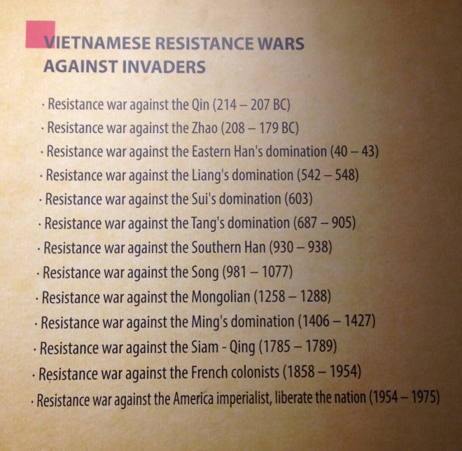 Through the storyline presented, you easily see the passion behind the need for liberation that they had reached by the end of WWII. The whole museum builds up to the final Battle – “The American War.” In this final section they describe their war tactics, displaying artifacts with a very exact description of each – this was a fascinating read. The descriptions read more like a history of a people passed down verbally, rather than a textbook type explanation (which says something of the culture itself). A sword, for example, might say – “This sword was owned by *name* who used it to kill 5 enemy soldiers in *city*, commandeering two enemy rifles in the process.” It’s very different than an experience you have in a US museum – it’s not as concise – but it’s kind of cool to see history told in such a personal way. Afterall, it’s not just leaders who are talked about in the museum, but the everyday man.
