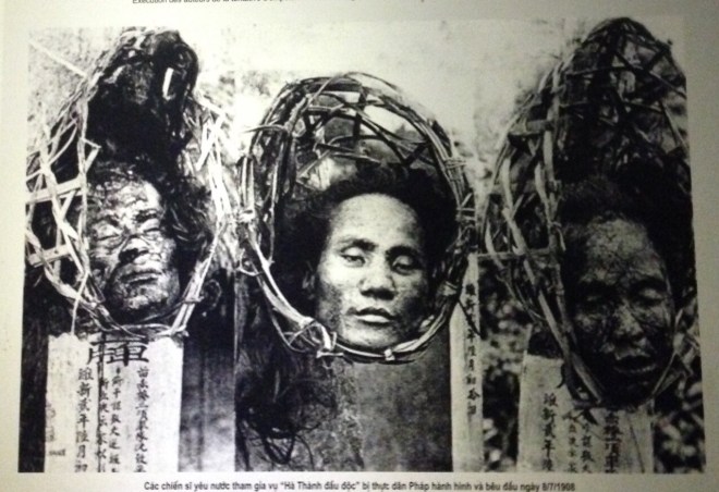 A picture of a picture that was next to a guillotine used by the French for decapitating Vietnamese prisoners, their heads then placed publicly as an example.